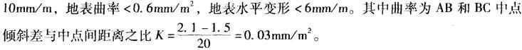 某采空区场地倾向主断面上,每隔20m间距顺序排列A、B、C三点,地表移动前测量 的高程相同,如图8-2所示。地表移动后垂直移动分量,B点较A点多42mm,...