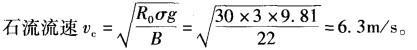 根据泥石流痕迹调查测绘结果,在一弯道处的外侧泥位高程为1028m,内侧泥位高程为1025m,泥面宽度22m,弯道中心线曲率半径为30m。按现行《铁路工程不...