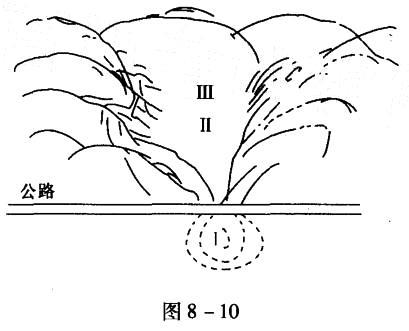 如图8-10所示为我国西部212国道通过某地的地形地貌特征,泥石流是主要工程灾害之一。I、II、III分别对应于泥石流的()。 A.形成区;流通区;...