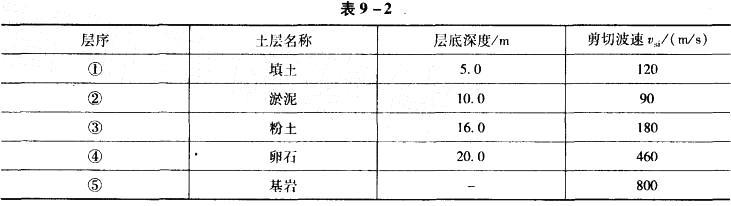 某建筑场地抗震设防烈度为8度,设计地震分组为第一组。场地土层及其剪切波速度如表9-2所示。已知结构自振周期为0.40s,阻尼比为0.05。按50年超越概率...