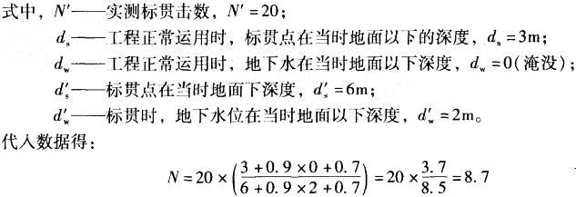 某水利工程位于8度地震区,抗震设计按近震考虑。勘察时地下水位在当时地面以下的深度为2.0m,标准贯入点在当时地面以下的深度为6.0m。实测砂土(黏粒含量ρ...