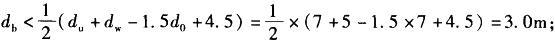 解析 根据《建筑抗震设计规范》(GB 50011 —2010)第4.3.3条,由已知得: du=10-3=7m, d0=7m,则: ①如满足du>d0+db-2, 则有:db<du-d0+2=7-7+2=2m; ②如满足dw>d0+db-3,则有:db<dw-d0+3=5-7+3=1.0m; ③如满足du+dw>1.5d0+2db-4.5,则有: 满足上述之一即可不考虑液化影响。
