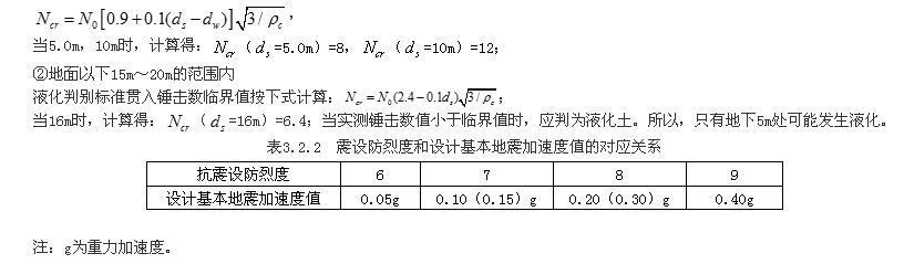 解析 根据《建筑抗震设计规范》(GB 50011—2010)表3.2.2规定,设计基本加速度为0.15g时,抗震设防烈度为7度。 按以下两种情况分析: ①地面以下15m的范围内 液化判别标准贯入锤击数临界值按下式计算:(规范4.3.4条)