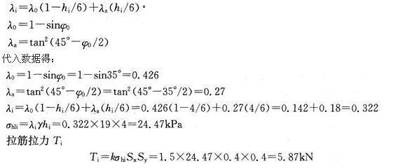 问题 如图9所示的加筋土挡土墙,拉筋间水平及垂直间距Sx=Sy=0.4m,填料重度γ=19kN/m3,综合内摩擦角ψ=35°,按《铁路支挡结构设计规范》(TB 10025—2001),深度4m处的拉筋拉力最接近下列哪一选项(拉筋拉力峰值附加系数取k=1.5)?(  )