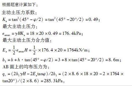 浅埋洞室半跨b=3.0m,高h=8m。如图8所示。上覆松散体厚度H=20m,容重=r18kN/m3。黏聚力c=0,内摩擦角φ=20°。用太沙基理论求AB面...