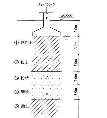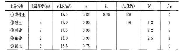 某一建筑物按抗震要求为乙类建筑,条形基础宽度b=2.0m,埋深d=2.0m,地基剖面如图4所示,基础底面下各层土的厚度、土性指标等如表1所示,荷载按地震效...