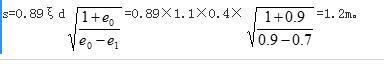 解析 由已知条件有e0=0.9,e1=0.7,d=0.4m,ξ=1.1,根据《建筑地基处理技术规范》(JGJ 79—2012)第7.2.2条第4款规定,则对于正方形排列的砂石桩的间距s为: