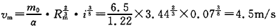问题 西北地区某沟谷中洪水期过水断面面积为1100m2,湿周长为320m,泥石流粗糙系数为6.5,水面坡度为7.0%,固体物质平均比重为2.60,泥石流流体平均重度为 12.5kN/m3,则泥石流流速为( )m/s。