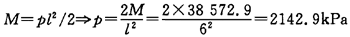 解析 溶洞顶板按梁板受力情况,取单位长度计算。 岩体抗弯强度计算 σ=R/8=3.5×1000/8=437.5kPa 极限状态下顶板抗弯验算所需的最大弯矩 M≤σbH2/l=437.5×1×232/6=38 572.9kN·m 由题中所给条件可知,按悬臂梁计算出总荷载p 溶洞顶板达到极限状态时地表平均附加荷载 p3=p-p1-p2=2142.9-23×21-5×18=1570kPa