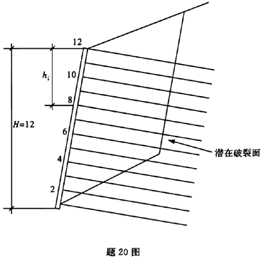 解析 据《铁路路基支挡结构设计规范》(TB 10025—2001)第9.2.4条计算 边坡岩体风化破碎严重,L取大值 第2排: L2=0.7(H-h2)=0.7×(12-10)=1.4m 第4排: h4=8m>6m L4=0.7(H-h4)=0.7×(12-8)=2.8m 第6排: h6=6m≤6m L6=0.35H=0.35×12=4.2m 第8排: h8=4m<6m L6=0.35H=0.35×12=4.2m