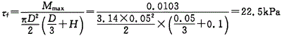 问题 在饱和软黏土中进行了十字板剪切试验。十字板板头尺寸为50mm×100mm,考虑了轴杆的影响后,测得土体的峰值扭矩Mmax=0.0103kN·m,终值扭矩M∞= 0.0041kN·m。则土体的抗剪强度τf和灵敏度St分别为( )。