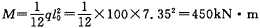 问题 某桩基的多跨条形连续承台梁,净跨距均为7m,承台梁受均布荷载q=100kN/m作用,则承台梁中跨支座处弯矩M为( )。