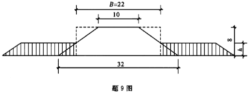 问题 如图,某路堤高8m,路堤填土γ=18.8kN/m3,地基土γ=16.0kN/m3,φ=10°, c=8.7kPa。采用路堤两侧填土压重方法以提高地基承载力,则填土高度需( )m才能满足(填土重度与路堤填土相同)。 A3.57 B4.18 C3.76 D4.25