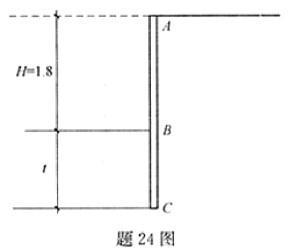 问题 基坑剖面如图所示,板桩两侧均为砂土,γ=19kN/m3,φ=30°,c=0,基坑开挖深度为1.8m,如果抗倾覆稳定安全系数K=1.3,按抗倾覆计算悬臂式板桩的最小入土深度最接近()。 A.1.8m B.2.0m C.2.5m D.2.8m
