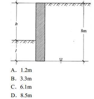 问题 在饱和软黏土地基中开挖条形基坑,采用8m长的板桩支护,地下水位已降至板桩底部,坑边地面无荷载,地基土重度为γ=19kN/m3,通过十字板现场测试得地基土的抗剪强度为30kPa,按《建筑地基基础设计规范》(GB 50007-2002)规定,为满足基坑抗隆起稳定性要求,此基坑最大开挖深度不能超过下列哪一个选项?()