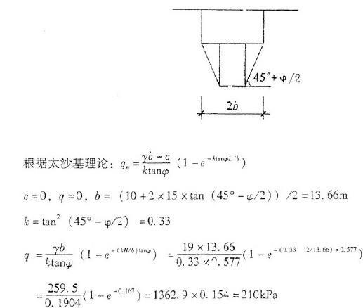问题 有一个宽10m高15m的地下隧道,位于碎散的堆积土中,洞顶距地面深12m,堆积土的强度指标C=0, φ =30°,天然重度γ= 19kN/m3,地面无荷载,无地下水,用太砂基理论计算作用于隧洞顶部的垂直压力最接近于()(土的侧压力采用郎肯主动土压力系数计算) (A) 210kPa (B) 230kPa (C) 250kPa (D) 270kPa