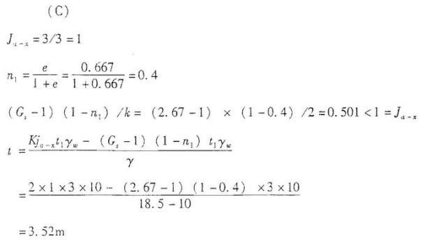 某土坝坝基有两层土组成,上层土为粉土,孔隙比0.667,比重2.67,层厚3.0m,第二层土为中砂,土石坝上下游水头差为3.0m,为保证坝基的渗透稳定,下...