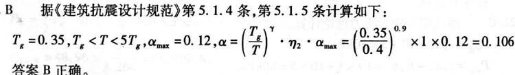已知场地地震烈度7度,设计基本地震加速度为0. 15g,设计地震分组为第一组。对建造于II类场地上,结构自振周期为0. 40s,阻尼比为0.05的建筑结构...