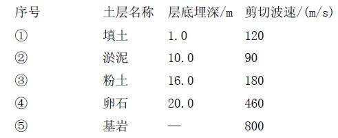 某建筑场地抗震设防烈度8度,设计地震分组第一组,场地土层及其剪切波速如表,建筑物自震周期0.40 s,阻尼比0.05,按50年超越概率63%考虑,建筑结构...