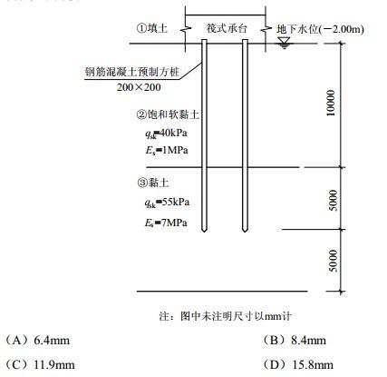 某软土地基上多层建筑,采用减沉复合疏桩基础,筏板平面尺寸为35mX10m,承台底设置钢筋混凝土预制方桩共计102根,桩截面尺寸为200mmX 200mm,...