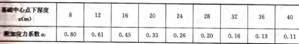 某高层建筑拟采用天然地基,基础埋深10m,基底附加压力为230kPa,基础中心点下附加应力系数见附表。初勘探明地下水位埋深3m,地基土为中,低压缩性的粉土...