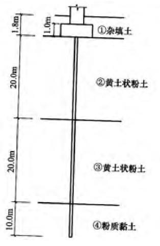 某甲类建筑物拟采用工作业钻孔灌注桩基础,桩径0.80m,桩长50.0m;拟建场地土层如图所示,其中土层②、③层均为湿陷性黄土状粉土,该两层土自重湿陷量= ...
