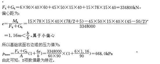 解析 根据《建筑地基基础设计规范》(GB 50007—2011)第5.2.2条第2款规定,当偏心荷载作用时,基础底面的压力为:
