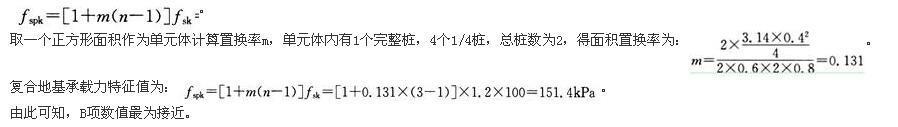 解析 根据《建筑地基处理技术规范》(JGJ 79—2012)第7.1.5条第1款,对散体材料增强体复合地基,地基承载力特征值应按下式计算: