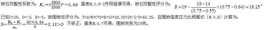 某水利建筑物洞室由厚层砂岩组成,其岩石的饱和单轴抗压强度Rb为30MPa,围岩的最大主应力σm为9MPa。岩体的纵波速度为2800m/s,岩石的纵波速度为...