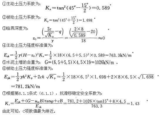 解析 根据《建筑基坑支护技术规程》(JGJ 120—2012)第3.4.2条,计算如下: