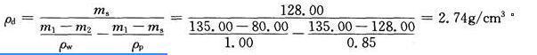 解析 根据《工程岩体试验方法标准》(GB/T 50266—2013)第2.3.9条规定,采用蜡封法时岩石块体干密度可按下式计算: 由此可知,C项数值最为接近。
