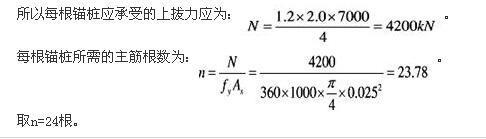 某桩基工程设计要求单桩竖向抗压承载力特征值为7000kN,静载试验利用邻近4根工程桩作为锚桩,锚桩主筋直径25mm,钢筋抗拉强度设计值为360N/mm2。...