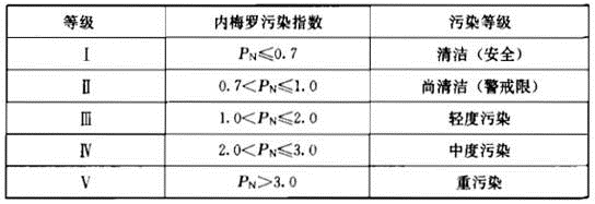 解析 根据《岩土工程勘察规范》(GB 50021—2001)(2009年版)条文说明第6.10.13条规定,土壤环境质量评价可以用内梅罗污染指数划分污染等级,其公式为: 将上述数据代入公式,可得: 由表得,污染等级为Ⅲ级,轻度污染。 土壤内梅罗污染指数评价标准