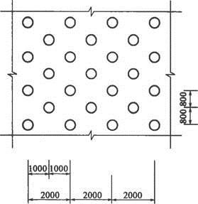 问题 某场地为细砂层,孔隙比为0.9,地基处理采用沉管砂石桩,桩径0.5m,桩位如图所示(尺寸单位:mm),假设处理后地基土的密度均匀,场地标高不变,问处理后细砂的孔隙比最接近下列哪个选项?(  )