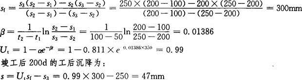 某工程软土地基采用堆载预压加固(单级瞬时加载),实测不同时刻t及竣工时(t=150d)地基沉降量s如下表所示。假定荷载维持不变。按固结理论,竣工后200d...