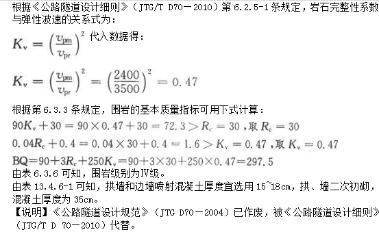 在岩体破碎、节理裂隙发育的砂岩岩体内修建的两车道公路隧道,拟采用复合式衬砌。岩石饱和单轴抗压强度为30MPa。岩体和岩石的弹性纵波速度分别为2400m/s...