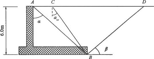 某悬臂式挡土墙高6.0m,墙后填砂土,并填成水平面。其γ=20kN/m3,c=0,φ=30°,墙踵下缘与墙顶内缘的连线与垂直线的夹角α=40°,墙与土的摩...