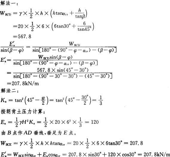 解析 根据无粘性土的主动土压力及坦墙的土压力理论可以计算: