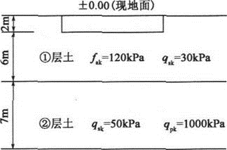 某多层建筑采用条形基础,宽度1m,其地质条件如图所示,基础底面埋深为地面下2m,地基承载力特征值为120kPa,可以满足承载力要求,拟采用减沉复合疏桩基础...