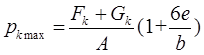 解析 根据《建筑地基基础设计规范》(GB 50007—2011)第5.2.2条第2款,当偏心荷载作用时 pkmax=[(Fk+Gk)/A]+(Mk/W) 依题Fx=Fcos60°=2500cos60°=1250kN Fy=Fsin60°=2500sin60°=2165kN 偏心距为 e=ΣM/ΣN=(1250×1.5-300)/(2165+3×4×2.5×20)=0.57<b/6=4/6=0.67 为小偏心。当基础底面形状为矩形且偏心距e<b/6时,pkmax应按下式计算: 代入数据计算得