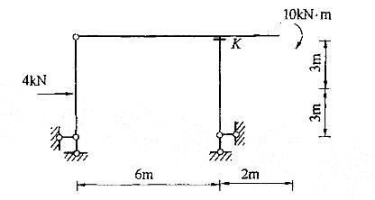 图示结构K截面弯矩值为: A. 10kN ? m(右侧受拉) B. 10kN ? m(左侧受拉) C. 12kN ? m(左侧受拉) D....