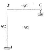 问题 图示结构(杆件截面为矩形)在温度变化时,已知t1>t2。若规定内侧受拉的弯矩为正,则各杆端弯矩为: A. MBC=MBA=MAB>0 B. MBC=MBA=MABC. MBC=MBAAB>0 D. MBC=MBA>0,MAB