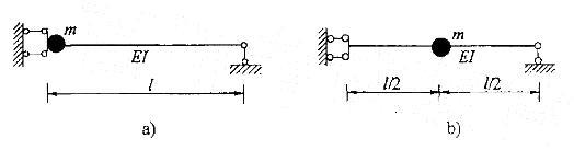 下面两梁仅质点位置不同,给以干扰后,振动得快的是: A.图 a) B.图 b) C. 一样快 D.哪个初始干扰力大,哪个就快
