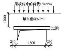 解析 设hw为墙体高度,ln为过梁的净长度,当hwln/3,应按ln/3墙体的均布自重来采用,为5×1.8/3=3kN/m。故作用在过梁上的荷载为梁板与墙体传来的荷载之和,大小为:15+3=18kN/m。
