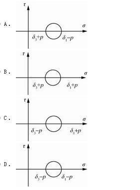 问题 岩石边坡内某一结构面的最大、最小应力分别为σ1和σ3。当有地下水压力P作用时,其应力状态莫尔圆应该用下列哪个图表示?(  )