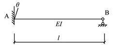 问题 图示梁AB,EI为常数,固支端A发生顺时针的支座转动θ,由此引起的B端转角为(  )。