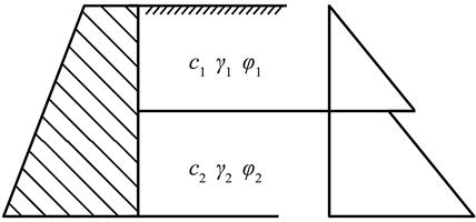 问题 直立光滑挡土墙后双层填土,其主动土压力分布为两段平行线,如下图所示,其中c1=c2=0,选择两层土参数的正确关系(  )。