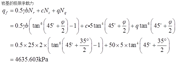 问题 某岩基作用有垂向荷载,岩基的容重γ=25kN/m3,c=50kPa,φ=35°,当条形基础的宽度为2m、且无附加压力时,其极限承载力是(  )。