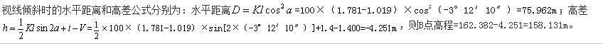 相关内容:视距,测量,经纬仪,高程,162.382m,仪器,三丝,读数,1.019m,1.400m,1.781m