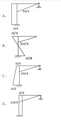 解析 由结构的受力可知,固定支座处的水平反力为零,故竖直杆的弯矩不可能是斜直线,排除BC两项,由刚节点处的平衡可知弯矩图D不正确。